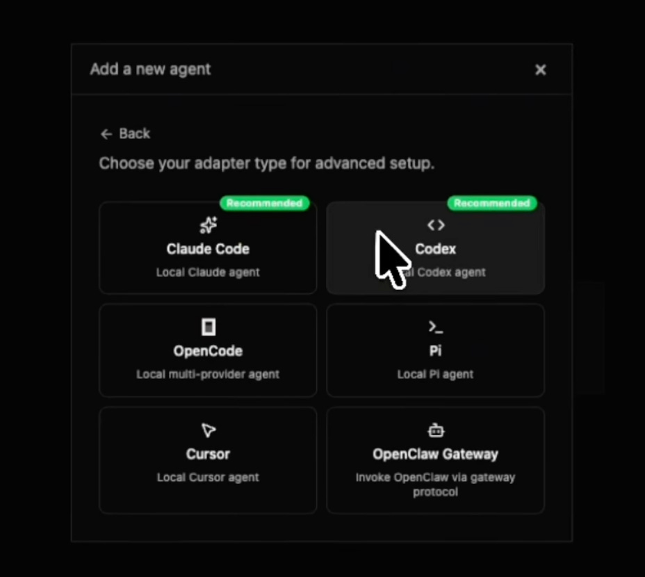 You pick from Claude Code, Codex, OpenCode, Pi Agent, or the OpenClaw gateway.