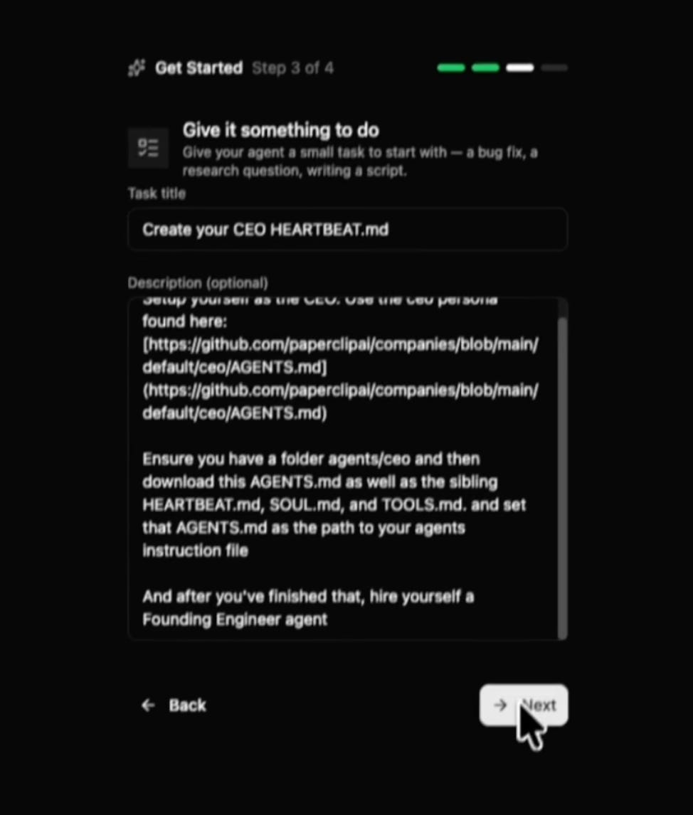 Paperclip has a default setup that pulls the CEO persona from their GitHub repo and gets the agent to build out its own agent.md, soul file, tools, everything.